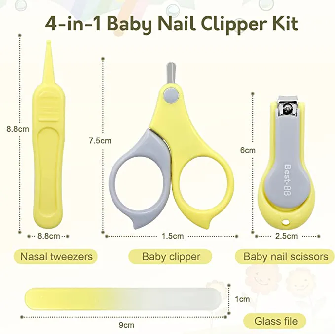 Baby Nail Clipper Kit, 4-in-1 Baby Nail Care Set with Cute Case, Baby Nail Clippers Scissor, Nail File & Tweezer for Newborn Infant Toddler Kids Toes and Fingernails (Yellow)