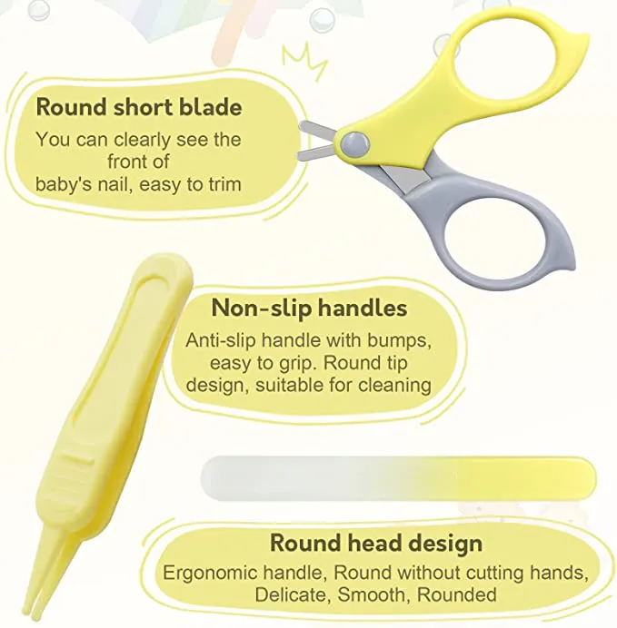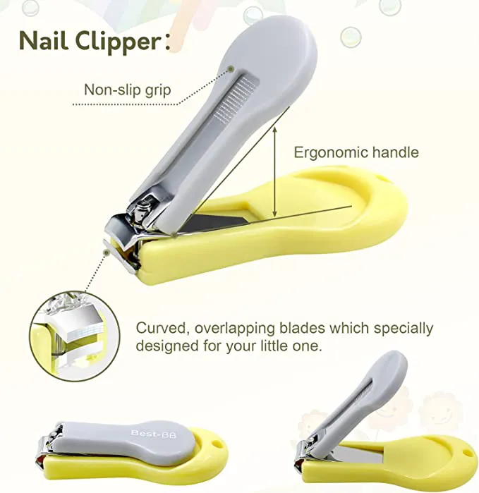?Ergonomic Design?Nail Clipper ergonomic handle, curved, overlapping blades, non-slip handle. Nail File delicate, smooth, rounded, perfect size for the small fingers and toes of babies toddlers.