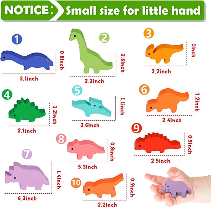 ?? Creative Early Learning Game : Our wooden dinosaur stacking game requires great patience when playing and may lead to failure if not careful. It is designed to train children’s concentration, thinking skills, logic, hands-on skills, and improve their emotional control and pressure resist through the process of play.