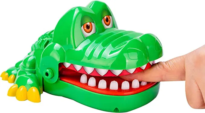 EASY GAME: With no assembly required, this game is quick and easy to set up, each turn players try their luck on clicking the teeth, if unlucky and choose the wrong tooth, then the crocodile will suddenly close it’s mouth and the player get loses.