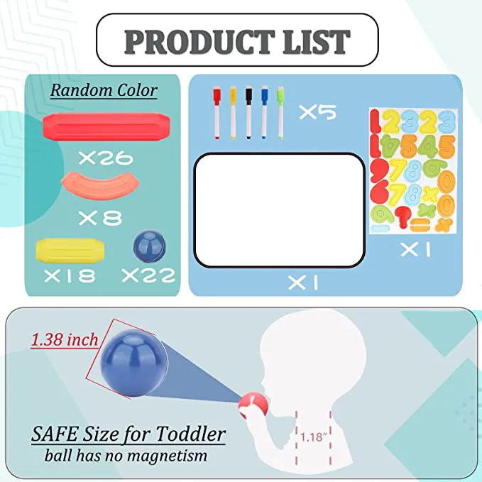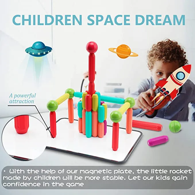 Magnetic Panel/Numbers+Markers: Magnetic rods can be tightly attached to whiteboards and used to build models such as rockets. The small white board has a smooth surface for writing. We provide 5 colors markers to write, color, and draw. Eraser built in the cap of the marker allows for easy cleaning and storage. Magnetic numbers are not the most important role, but they are still interesting. Numbers from 0 to 9 are enough to enlighten children.
