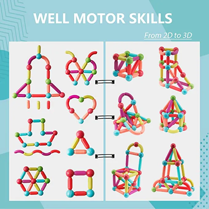 Educational Toys: magnetic sticks are used for counting, sorting, math, color recognition and so on. Our preschool math games cover numbers activities from learning numbers, counting to 10 up to addition and subtraction with magnetic sticks to help visualization.