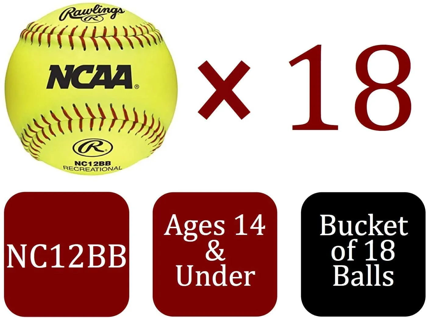 Rawlings 6 Gallon Bucket with 18 – 12″ NCAA Fastpitch Softballs